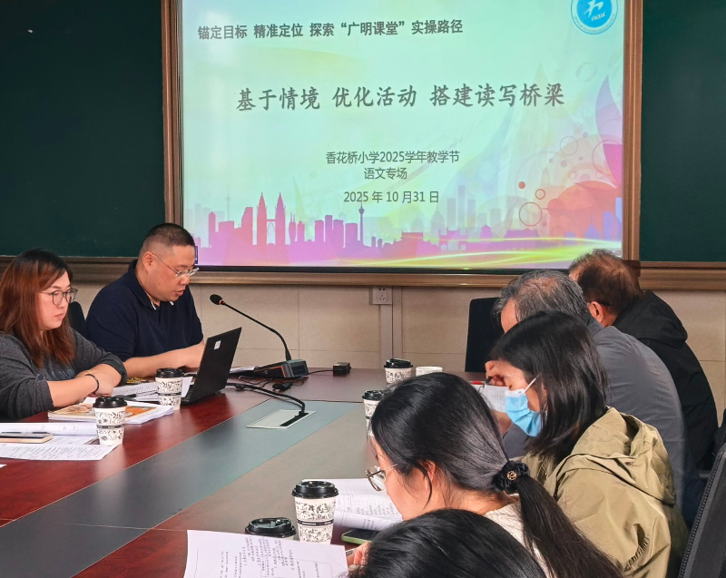 2025年10月31日下午,香花桥小学教学节专题研讨活动(语文专场)顺利进行。本次活动围绕“基于情境 优化活动 搭建读写桥梁”主题展开,原教育部“国培计划”专家组成员、原市“双名工程”主持人、原区教师进修学院教研室主任、特级教师李永元老师莅临指导,逸夫小学、上海师范大学附属青浦重固学校以及上海师范大学附属实验学校的语文教师代表参加了此次研讨活动。